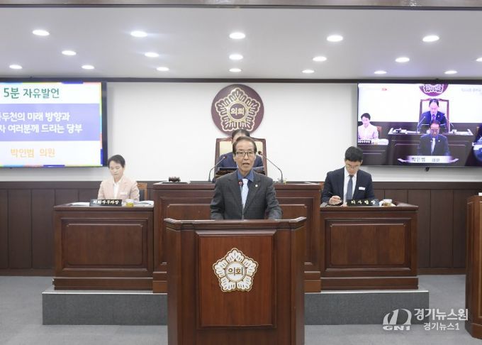 [경기뉴스원/경기뉴스1] | 동두천시의회 박인범 의원(더불어민주당, 나선거구)이 제345회 임시회 폐회식에서 시의원으로서의 마지막 5분 자유발언에 나섰다. 제1대, 제8대, 제9대 동두천시의원과 제8대 경기도의회 의원을 거친 박 의원은 이번 임기를 끝으로 의정활동을 마무리하며, 공직자들에게 '시민이 찾아오는 동두천'을 향한 당부의 메시지를 전했다.