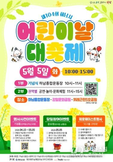 [경기뉴스원/경기뉴스1] | 하남시는 2026년 제104회 어린이날을 맞아 오는 5월 5일, 어린이와 가족이 함께 즐길 수 있는 ‘제104회 하남시 어린이날 대축제’를 개최한다.