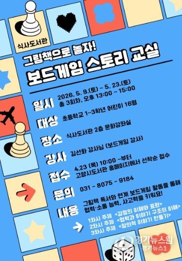 [경기뉴스원/경기뉴스1] | 고양특례시 식사도서관이 오는 5월 9일부터 공공도서관 독서문화 프로그램 ‘그림책으로 놀자! 보드게임 스토리 교실’을 운영한다.