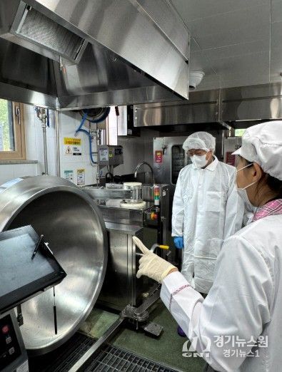 [경기뉴스원/경기뉴스1] | 한양수 교육장 등 성남교육지원청 관계자들은 21일 판교대장초등학교 급식실을 찾아 특별 위생점검을 실시하고, 조리 로봇 운영 현황을 살펴보았다.