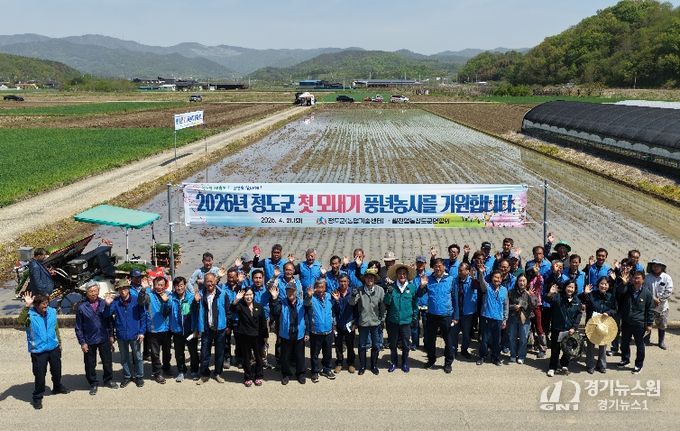 [경기뉴스원/경기뉴스1] | 청도군은 21일 이서면 금촌리 일원에서 (사)한국쌀전업농청도군연합회 주관으로 2026년 첫 모내기 행사를 개최하고 본격적인 영농철의 시작을 알렸다.