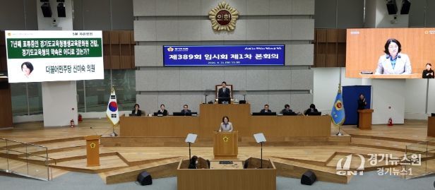 [경기뉴스원/경기뉴스1] | 경기도의회 교육기획위원회 신미숙 의원(더불어민주당, 화성4)은 21일, 제389회 임시회 제1차 본회의에서 진행한 5분 자유발언을 통해, 2019년부터 현재까지 표류중인 ‘경기도교육청평생교육문화원’ 건립 지연을 강하게 질타하며 경기도교육청의 책임감있는 결단을 촉구했다.