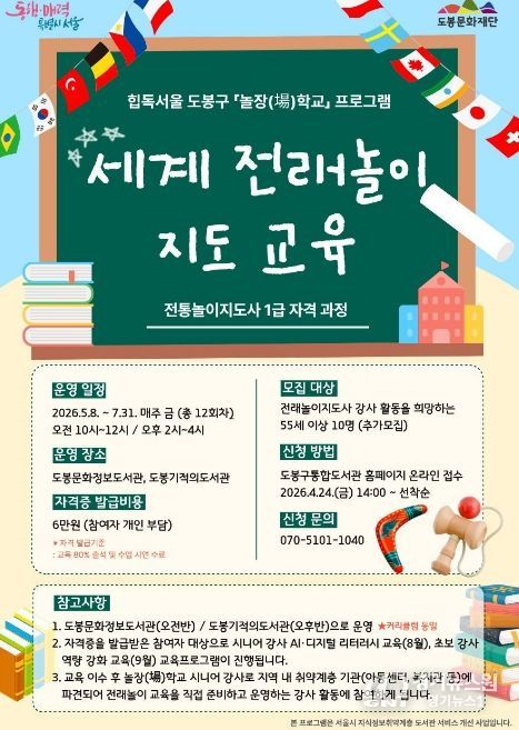 [경기뉴스원/경기뉴스1] | 서울 도봉구 구립도서관이 서울도서관 주관 ‘2026년 지식정보취약계층 도서관 서비스 개선사업’ 일환으로 5월부터 11월까지 ‘놀장(場)학교’를 운영한다고 밝혔다.