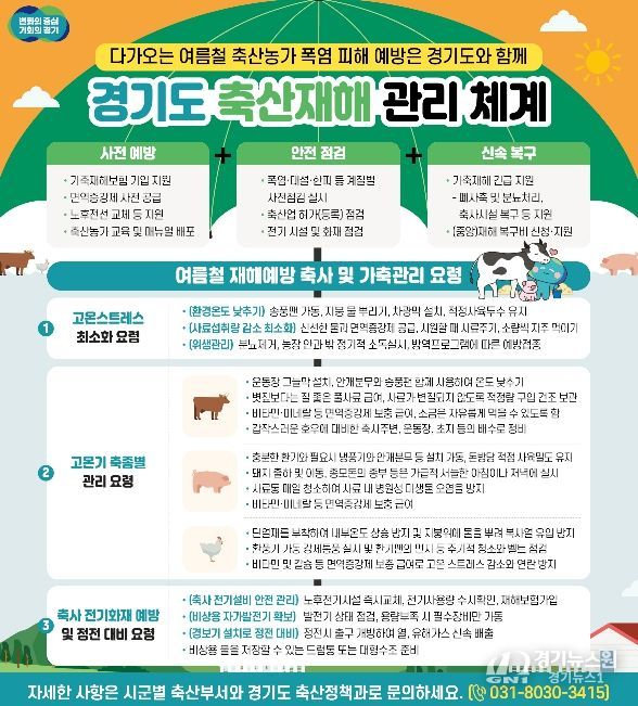 [경기뉴스원/경기뉴스1] | 경기도가 올여름 무더위로부터 축산농가를 보호하기 위해 예산 지원과 현장점검을 아우르는 전방위적 대응에 나섰다.