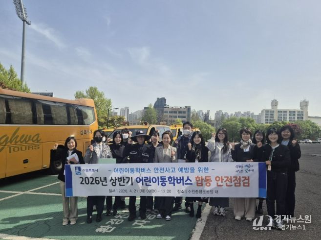 [경기뉴스원/경기뉴스1] | 수원특례시는 21일 수원종합운동장 주차구역에서 수원 장안·권선·팔달·영통경찰서, 한국교통안전공단과 함께 ‘2026년 상반기 어린이통학버스 합동 안전점검’을 했다.