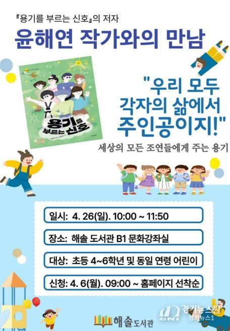 [경기뉴스원/경기뉴스1] | 파주시 해솔도서관은 오는 26일 ‘윤해연 작가와의 만남: 우리 모두 각자의 삶에서 주인공이지’를 진행한다.