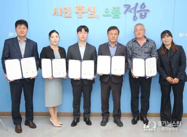 [경기뉴스원/경기뉴스1] | 정읍시가 지난 21일 시청에서 제3일반산업단지 입주 기업인 ㈜에스앤비, 첨단과학산업단지 입주 기업인 ㈜기르다, ㈜대희정밀과 투자협약을 맺었다.