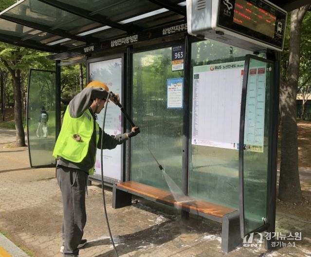 [경기뉴스원/경기뉴스1] | 수원시 영통구는 지난 21일, 새봄을 맞아 대중교통 이용 환경 개선을 위한 버스승강장 환경정비를 시작했다.