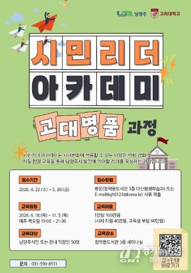 [경기뉴스원/경기뉴스1] | 남양주시는 시민의 자치 역량 강화를 위해 ‘남양주시 시민리더 아카데미’ 제20기 수강생을 모집한다고 22일 밝혔다.