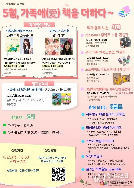 [경기뉴스원/경기뉴스1] | 경기도교육청평생학습관이 가족 사랑 실천과 가족 간 유대감 증진을 위해 가족 독서체험 행사인 䃵월, 가족애(愛) 책을 더하다’를 운영한다.