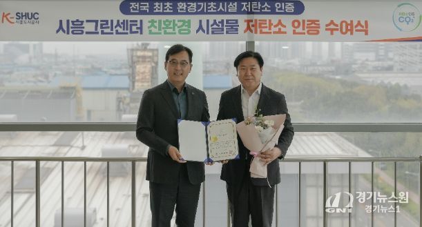 [경기뉴스원/경기뉴스1] | 시흥도시공사는 지난 4월 21일 도시재생안전협회로부터 시흥그린센터 ‘친환경 시설물 저탄소’ 인증을 획득하고 인증식을 진행했다고 밝혔다. 이번 성과는 기관 단위가 아닌, 전국 환경기초시설 중 최초로 ‘시설물 단위 사업장’의 저탄소 인증을 받은 사례로, 환경 분야의 새로운 이정표를 세웠다는 평가를 받고 있다.