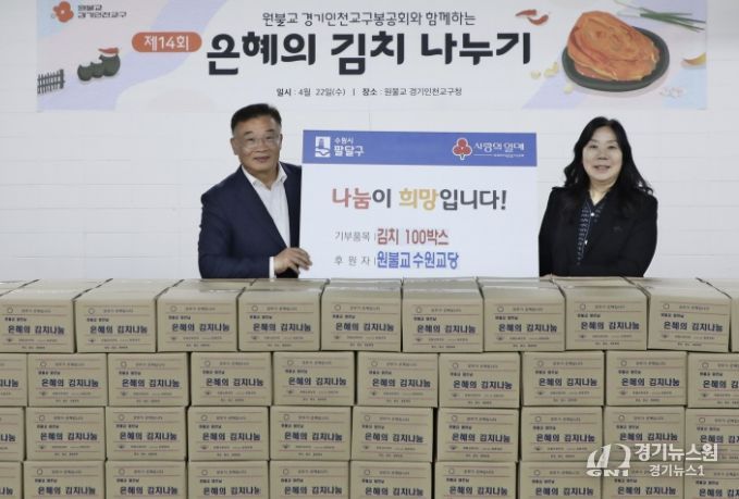 [경기뉴스원/경기뉴스1] | 수원시 팔달구은 원불교 수원교당으로부터 지난 22일, 김치 100박스를 기부받았다고 밝혔다.