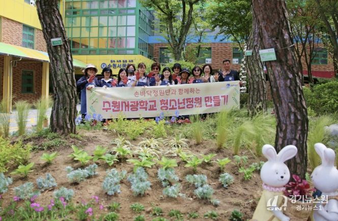[경기뉴스원/경기뉴스1] | 수원시 장안구는 지난 22일, 시민과 함께하는 열린 정원문화를 확산하고자 장안구 손바닥정원단 및 수원서광학교 학생들과 함께하는 '수원서광학교 청소년가든 조성 행사'를 개최했다.