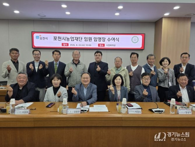 [경기뉴스원/경기뉴스1] | 재단법인 포천시농업재단은 4월 22일 공개모집 절차를 통해 선발된 비상임 이사 및 감사 13명을 대상으로 임명장 수여식 개최하고 2028년까지 운영되는 제3대 이사회 출범을 알렸다.