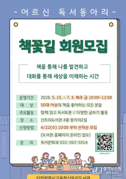[경기뉴스원/경기뉴스1] | 인천광역시교육청신트리도서관은 어르신의 정서 안정과 삶의 질 향상을 지원하고 지역사회 독서문화 활성화를 위해 독서동아리 ‘책꽃길’을 운영한다.
