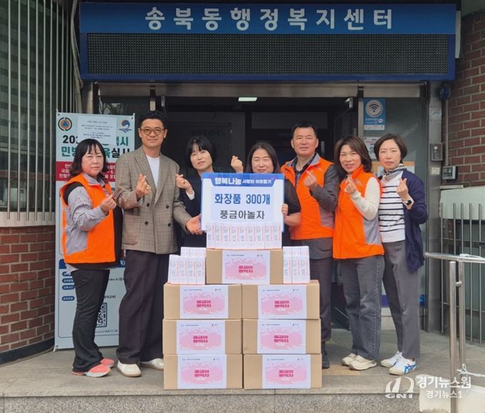 [경기뉴스원/경기뉴스1] | 풍금아놀자는 지난 22일 화장품 300개를 평택시 송북동 행정복지센터에 전달했으며, 기부된 화장품은 송북동 내 취약계층 가구에 전달될 예정이다.
