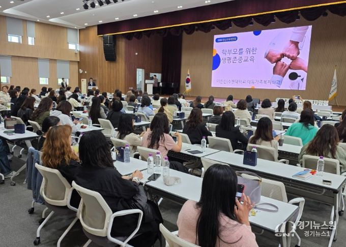 [경기뉴스원/경기뉴스1] | 경기도안산교육지원청은 4월 23일 관내 초·중·고 및 특수학교 학부모 약 200명을 대상으로 외부 전문 강사를 초청하여 청소년 학교폭력 예방, 학생자살 예방, 도박 예방을 주제로 한 학부모 역량 강화 연수를 실시했다.