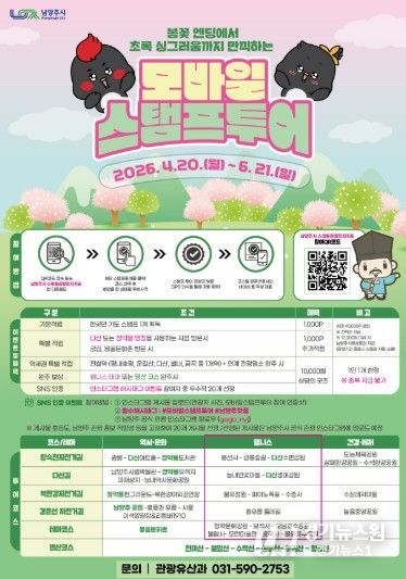 [경기뉴스원/경기뉴스1] | 남양주시는 역사·힐링·건강·체험을 결합한 ‘2026년 상반기 모바일 스탬프투어’를 오는 6월 21일까지 운영한다고 23일 밝혔다.