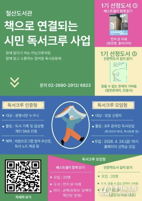 [경기뉴스원/경기뉴스1] | 광명시 철산도서관이 시민이 함께 읽고 나누는 독서크루 운영을 시작한다.