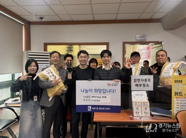 [경기뉴스원/경기뉴스1] | 수원시 권선구 소재 수성교회는 세류3동행정복지센터에 쌀 50포를 기부하며, 지역 내 어려운 이웃을 위한 따뜻한 나눔을 실천했다.