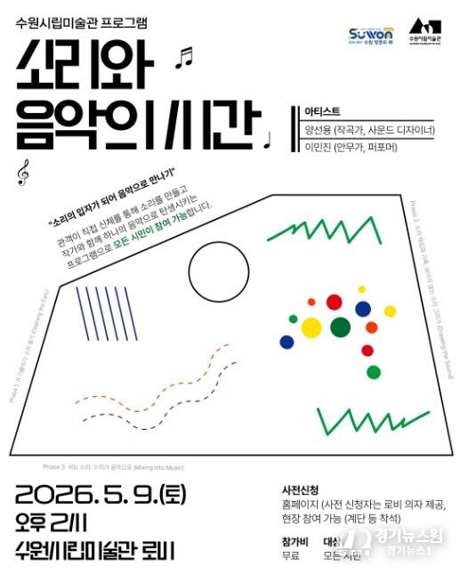 [경기뉴스원/경기뉴스1] | 경기도 수원시립미술관은 을 맞아 소리를 주제로 한 음악 프로그램 '소리와 음악의 시간'을 5월 9일 개최하며 참여자를 모집한다.