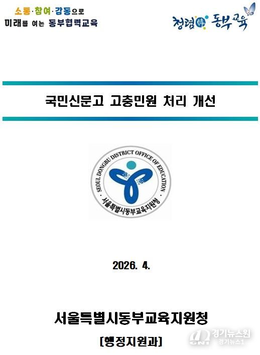 [경기뉴스원/경기뉴스1] | 서울특별시동부교육지원청은 기존의 처리기한과 답변형식 중심의 민원관리 체계에서 벗어나, 민원 성격에 따른 맞춤형 대응과 관리자 책임을 강화하는 방향으로 민원 처리 체계를 개선한다.
