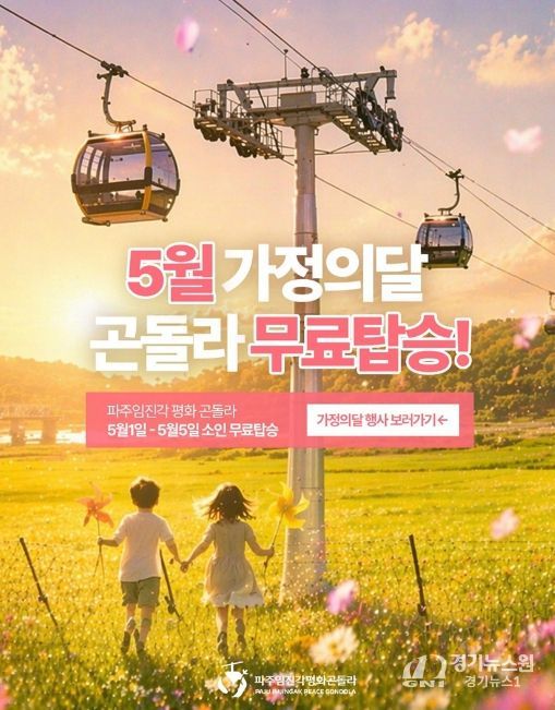 [경기뉴스원/경기뉴스1] | 파주시는 대표 관광 콘텐츠로 자리 잡은 ‘파주임진각평화곤돌라’에서 5월 가정의 달을 맞아 가족 단위 방문객을 위한 다양한 프로그램을 운영한다고 전했다.