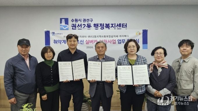 [경기뉴스원/경기뉴스1] | 수원시 권선구 권선2동은 지난 23일, 권선2동 지역사회보장협의체, 케이메디와 취약계층 어르신의 안전한 이동 지원과 삶의 질 향상을 위한 “실버카(보행보조기) 지원사업 업무협약(MOU)”을 체결했다.