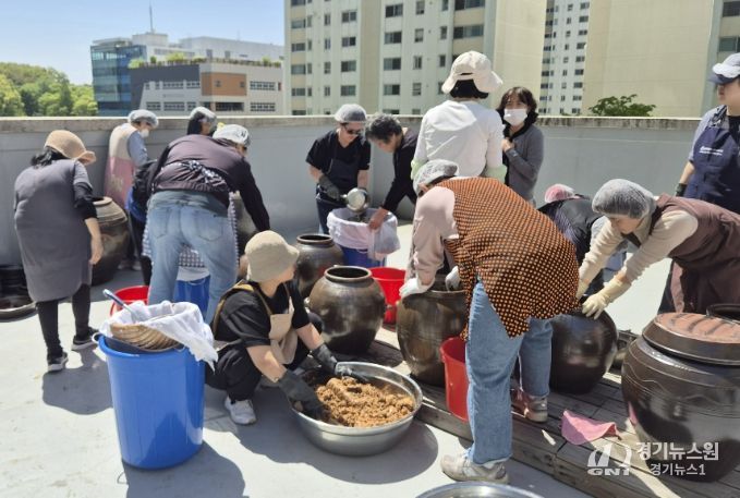 [경기뉴스원/경기뉴스1] | 수원시 장안구 조원2동 주민자치회는 지난 24일, 조원2동 행정복지센터 옥상에서 ‘전통 장 담그기 체험’의 두 번째 과정인 ‘장 가르기’ 활동을 진행했다.