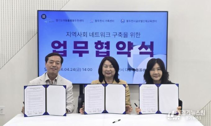 [경기뉴스원/경기뉴스1] | 동두천시글로벌인재교육센터는 지난 24일 동두천시가족센터, 동두천시다함께돌봄센터1호점(경기도아동돌봄동두천센터)과 함께 지역사회 네트워크 구축을 위한 3자 간 업무협약(MOU)을 체결했다고 밝혔다.