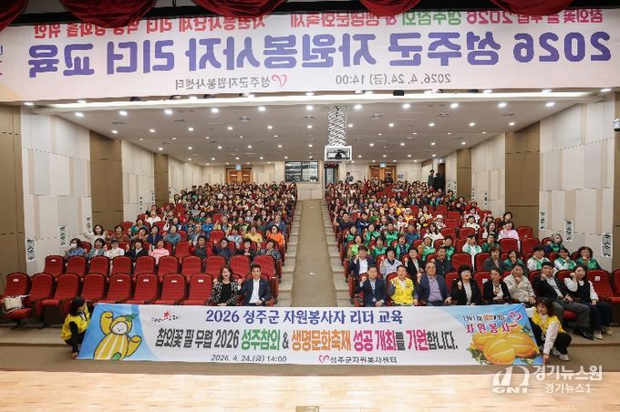 [경기뉴스원/경기뉴스1] | 경북 성주군자원봉사센터(센터장 이명진)는 지역 공동체의 따뜻한 변화를 이끄는 자원봉사 리더들을 한자리에 모아 의미 있는 교육의 장을 마련했다. 4월 24일 성주군청 대강당에서 열린 '2026 성주군 자원봉사자 리더 교육'은 단순한 역량 강화 교육을 넘어 나눔과 연대의 가치를 되새기고, 다가오는 지역 대표 축제를 함께 준비하는 결속의 자리로 깊은 울림을 전했다.