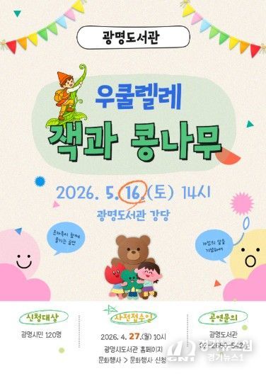 [경기뉴스원/경기뉴스1] | 광명시 광명도서관이 오는 5월 16일 오후 2시 온 가족이 함께 즐길 수 있는 창작뮤지컬 '우쿨렐레, 잭과 콩나무'를 연다.