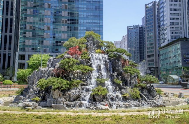 [경기뉴스원/경기뉴스1] | 마포구는 공덕오거리 교통섬(공덕동 438-5)에 자연경관을 접목한 석가산형 폭포를 조성하고, 4월 28일 오후 2시 준공식을 개최한다.