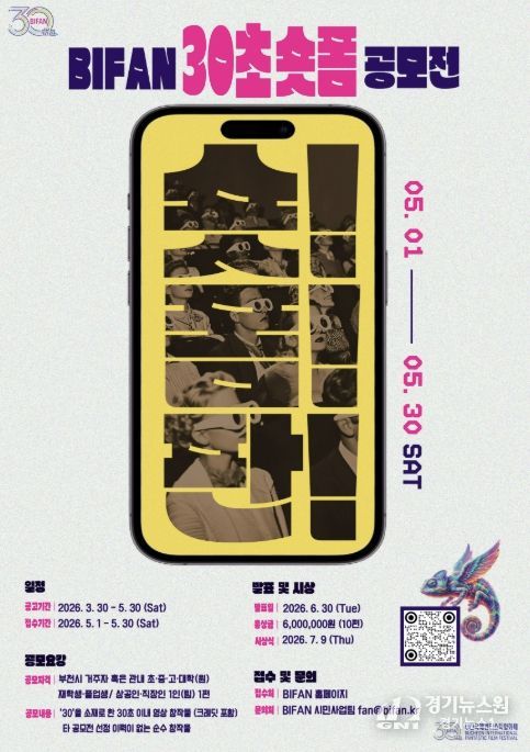 [경기뉴스원/경기뉴스1] | 부천시는 부천국제판타스틱영화제(BIFAN)와 함께 ‘숏! 폼! 판! BIFAN 30초 숏폼 공모전’을 열고, 제30회를 맞은 영화제를 기념해 시민 참여형 프로그램을 운영한다.