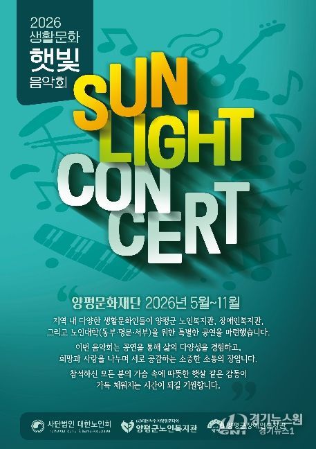 [경기뉴스원/경기뉴스1] | (재)양평문화재단은 관내 문화 예술 향유 기회를 확대하기 위해 찾아가는 음악회 ‘2026 햇빛 음악회’를 오는 5월 8일부터 본격적으로 운영한다고 밝혔다.