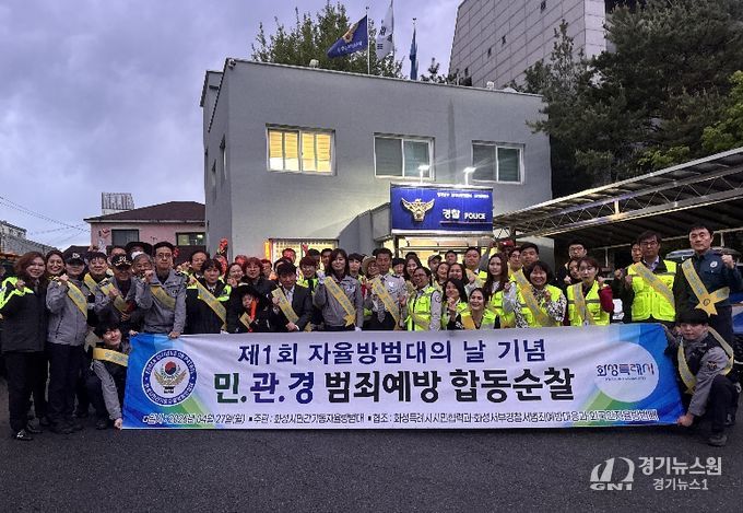 [경기뉴스원/경기뉴스1] | 화성특례시는 제1회 자율방범대의 날을 맞아 지난 27일 남양시장 일대에서 화성서부경찰서, 서부민간기동자율방범연합대와 함께 민·관·경 합동순찰을 실시했다.