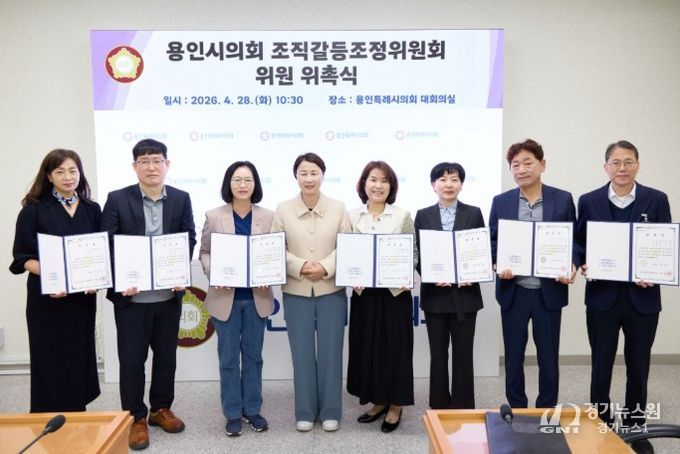 [경기뉴스원/경기뉴스1] | 용인특례시의회는 28일 대회의실에서 조직 내 갈등을 예방하고 합리적으로 조정하기 위한 조직갈등조정위원회 위원 위촉식을 개최했다.