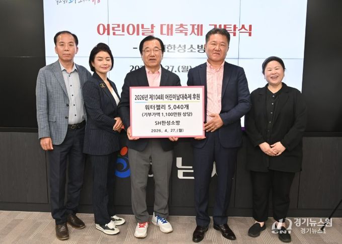 [경기뉴스원/경기뉴스1] | 하남시종합사회복지관은 ㈜SH한성소방으로부터 어린이날을 맞아 지역 아동들을 위한 물품을 기탁받았다고 밝혔다. 이번 기탁은 2026년 4월 27일 하남시청 시장실에서 진행됐으며, ㈜SH한성소방 이승헌 대표와 장수진 이사, 하남시종합사회복지관 관계자 등이 참석했다.