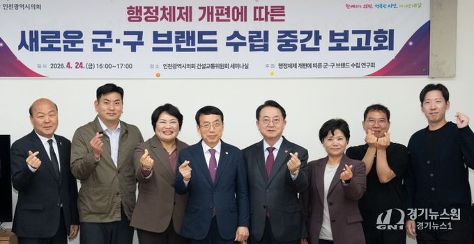 [경기뉴스원/경기뉴스1] | 인천광역시의회 ‘행정체제 개편에 따른 군·구 브랜드 수립 연구회(대표의원 허식)’는 최근 시의회 건설교통위원회 세미나실에서 새로운 군ㆍ구 브랜드 수립을 위한 연구용역 중간보고회를 개최했다고 28일 밝혔다.