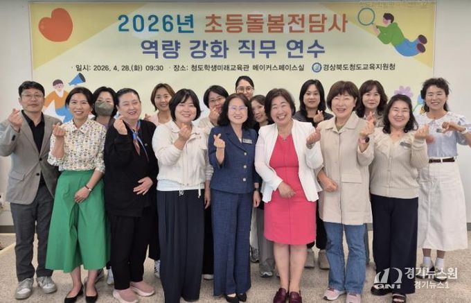 [경기뉴스원/경기뉴스1] | 청도교육지원청은 4월 28일 관내 초등학교 11명의 초등돌봄전담사를 대상으로 ‘2026년 초등돌봄전담사 역량 강화 연수’를 실시하고, 성인지 감수성 향상을 위한 교육을 진행했다.