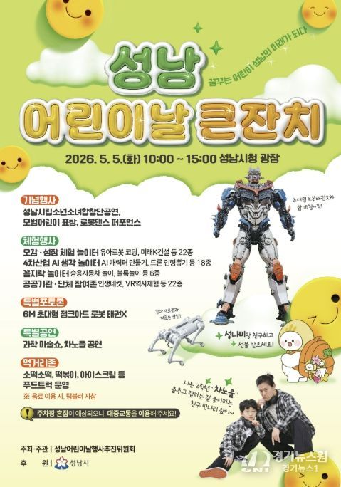 [경기뉴스원/경기뉴스1] | 성남시는 오는 5월 5일 시청 광장과 1층 온누리에서 ‘어린이날 큰잔치’를 개최한다.