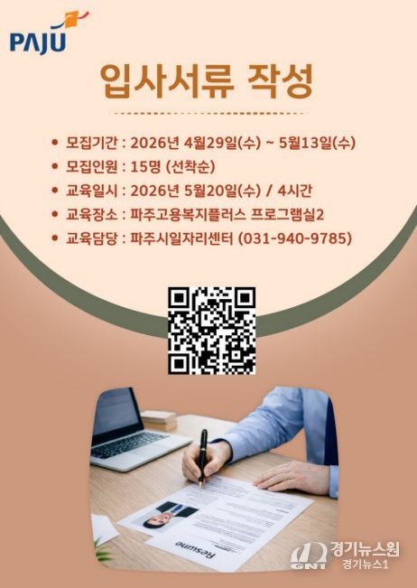 [경기뉴스원/경기뉴스1] | 파주시는 중장년 구직자의 원활한 노동시장 재진입을 돕기 위해 ‘입사서류 작성 실습 교육’참여자 15명을 모집한다.