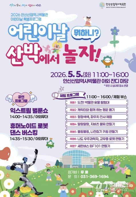 [경기뉴스원/경기뉴스1] | 안산시는 내달 5일 어린이날을 맞아 안산산업역사박물관에서 어린이날 특별프로그램 ‘어린이날 뭐하니? 산박에서 놀자!’를 개최한다고 29일 밝혔다.