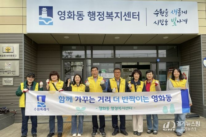 [경기뉴스원/경기뉴스1] | 수원시 장안구 영화동은 지난 28일, 주민자치회와 함께 거북시장 사거리 일대에서 봄철 환경정비 활동을 실시하며 쾌적한 마을환경 조성에 나섰다.