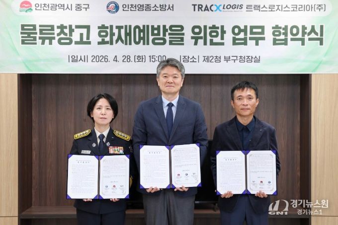 [경기뉴스원/경기뉴스1] | 인천시 중구는 영종소방서, 트랙스로지스코리아㈜와 ‘물류창고 화재 예방을 위한 업무협약’을 체결했다고 29일 밝혔다.