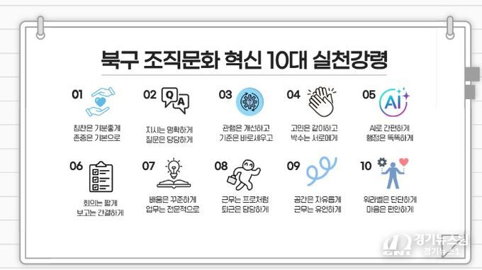 한편, 오는 30일 오후 3시 북구청 3층 회의실에서는 ‘조직문화 혁신을 위한 10대 실천 강령 선언식’이 개최된다.