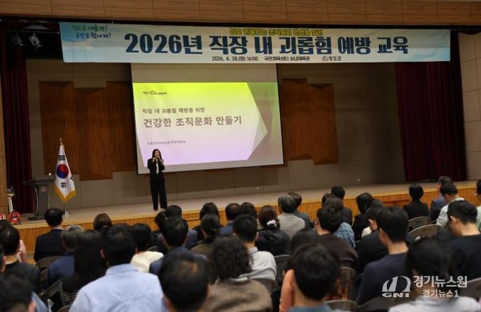 [경기뉴스원/경기뉴스1] | 청도군은 4월 28일 국민체육센터 실내체육관에서 김동기 청도군수 권한대행을 비롯한 간부 공무원과 전 직원이 참석한 가운데 ‘2026년 직장 내 괴롭힘 예방 교육’을 실시했다.