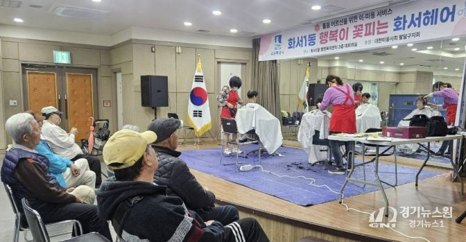[경기뉴스원/경기뉴스1] | 수원시 팔달구 화서1동은 지난 28일, 대한미용사회 팔달구지회와 협력하여 관내 취약계층 어르신을 위한 ‘찾아오는 이미용 서비스’를 운영했다.