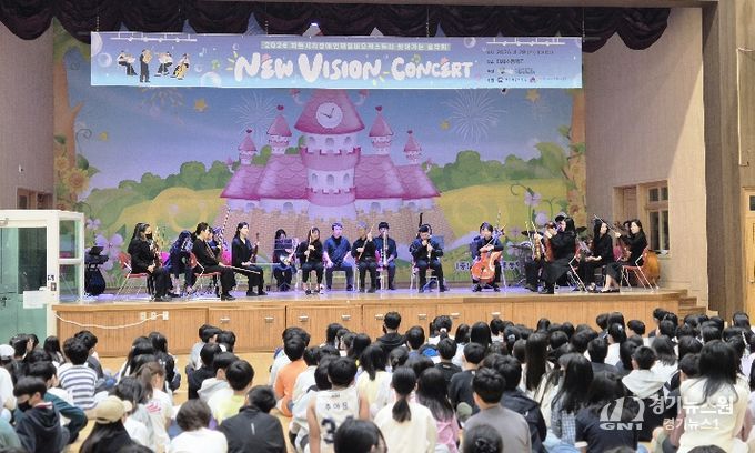 [경기뉴스원/경기뉴스1] | 미사초등학교는 5월 28일 교내 강당에서 ‘하트 시각장애인 체임버 오케스트라’의 ‘뉴비전 콘서트’를 개최했다고 밝혔다. 이번 공연은 학생들의 장애 인식 개선과 문화예술 감수성 향상을 위해 마련됐으며, 4·5·6학년 학생들이 참여했다.