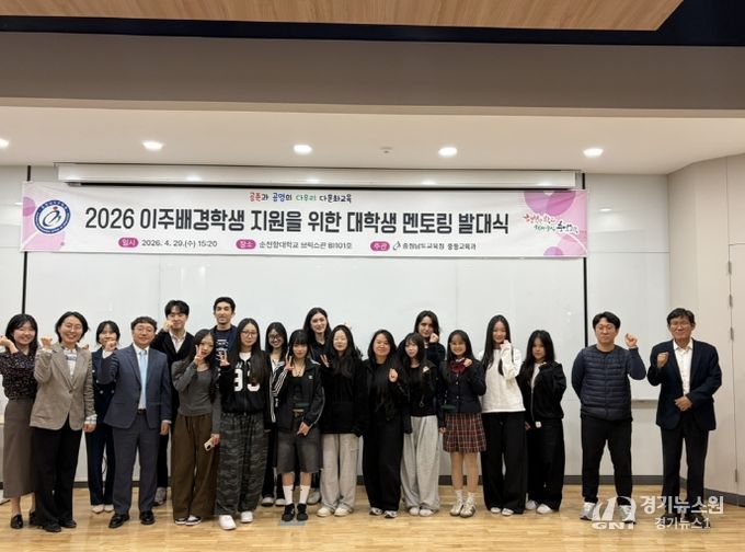 [경기뉴스원/경기뉴스1] | 충남교육청은 29일, 순천향대학교(아산)에서 순천향대 지도자 학생 6명과 온양용화고·아산충무고 학생 20명, 담당 교사 등 30여 명이 참석한 가운데 ‘2026 이주배경학생 지원을 위한 대학생 지도 발대식’을 개최했다.